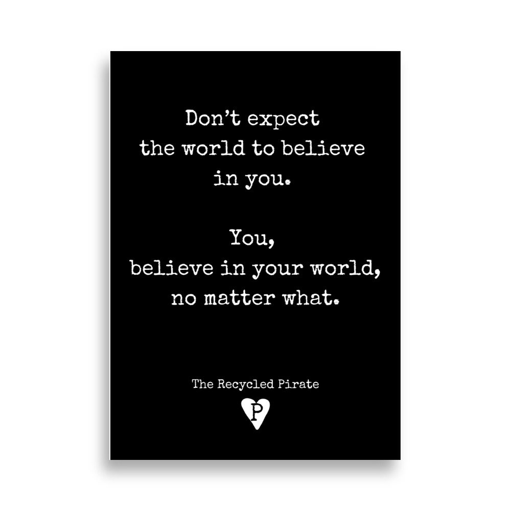 Before anyone can truly believe in you, you must be willing to believe in yourself. Sometimes, even when you are not sure… This poster is to help remind you that you must believe in the world that you wnat to create, no matter what.