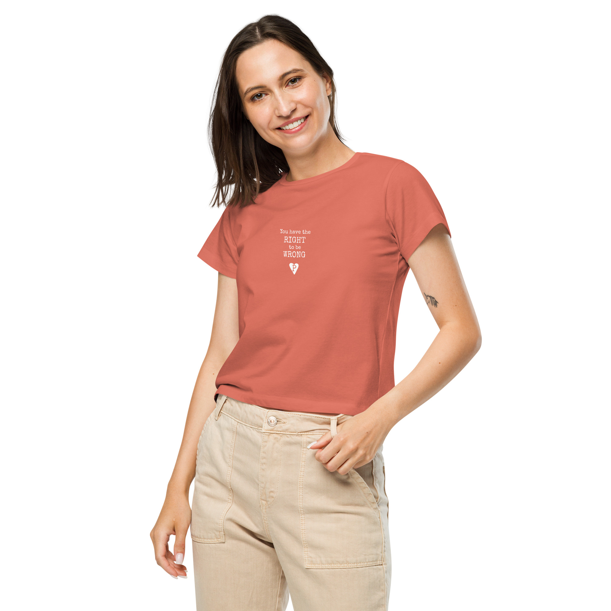 You have the right to be wrong women’s statement shirt. Wear your opinion on your chest and carry the message forth. It might get you a free coffee.
